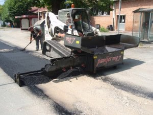 Los pavimentadores Pavijet son aditamentos para anexar a cargadores (Generalmente cargadores Bobcat) con los cuales podemos Pavimentar tramos estrechos tanto en asfalto caliente como frío.