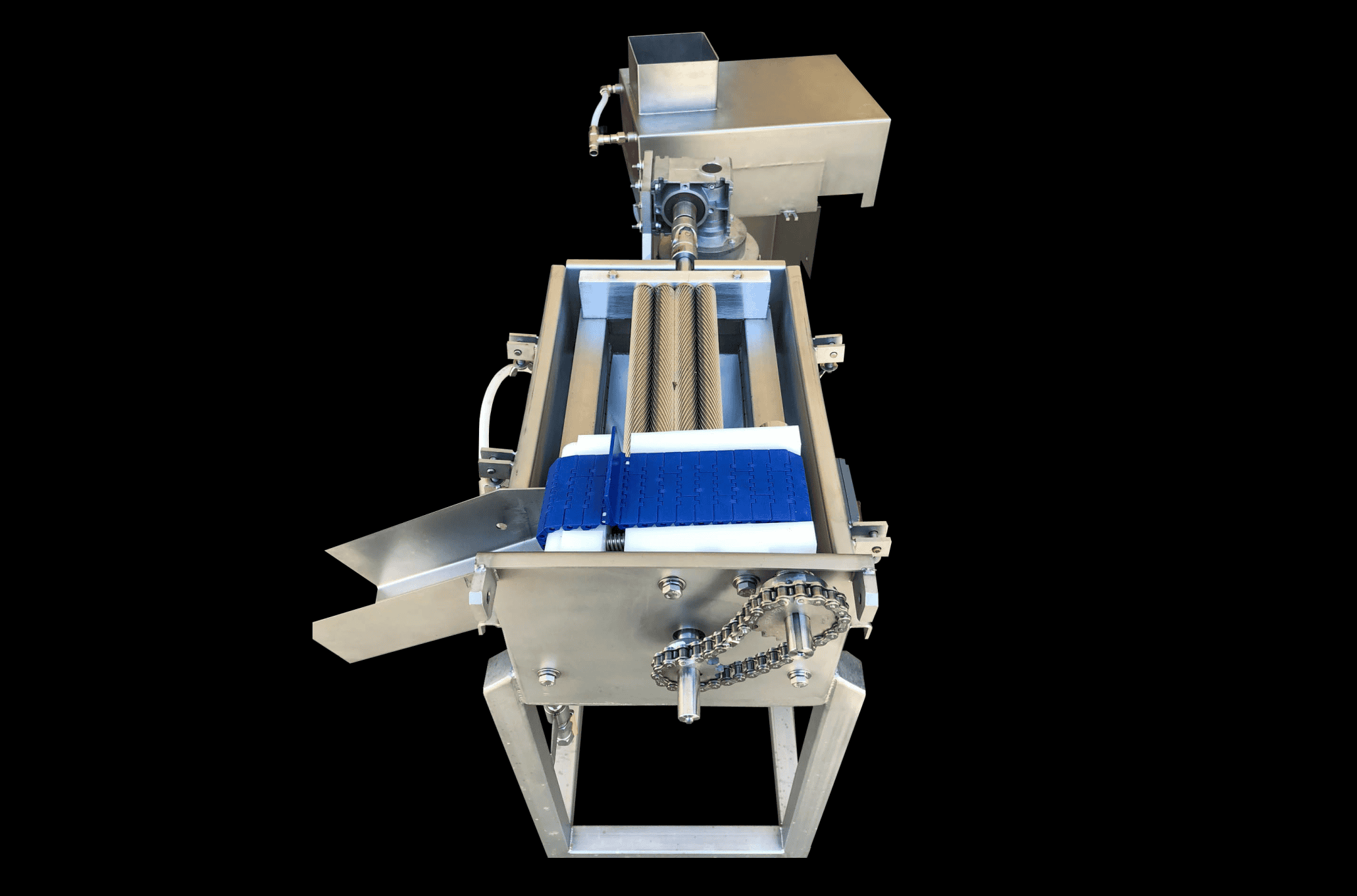 Suministramos la única máquina peladora de molleja completamente automatizada de la industria. Pela más del 85-90% sin hacerle daños a las mollejas. Ofrecemos asesoramiento en la configuración.