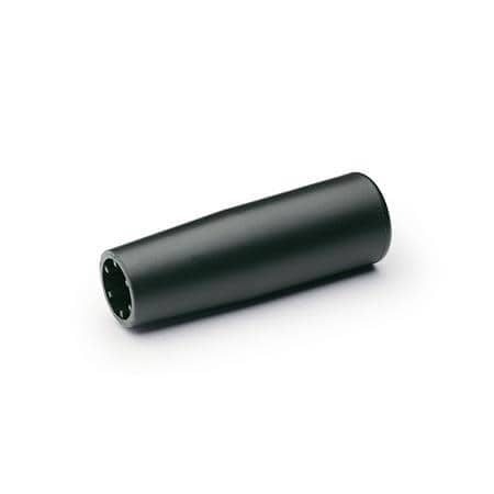 El uso de perillas cónicas EN 519.1 elimina la necesidad de una rosca en el eje. Estas empuñaduras cilíndricas se empujan sobre la palanca usando un martillo de plástico. Durante el montaje, son suficientes golpes suaves para empujar a la empuñadura a su lugar. El extremo del eje deberá ser ligeramente redondeado o biselado (30˚). A fin de incrementar la elasticidad, el orificio está acondicionado con costillas longitudinales, las cuales proporcionan un asiento muy firme de la empuñadura sobre el eje. Estas empuñaduras tienen un ajuste totalmente hermético contra las vibraciones. Diámetro de la empuñadura d1: (0.71, 0.83, 0.91, 1.02, 1.10) Orificio d2: (B 8, B 10, B 12, B 14, B 15, B 16)