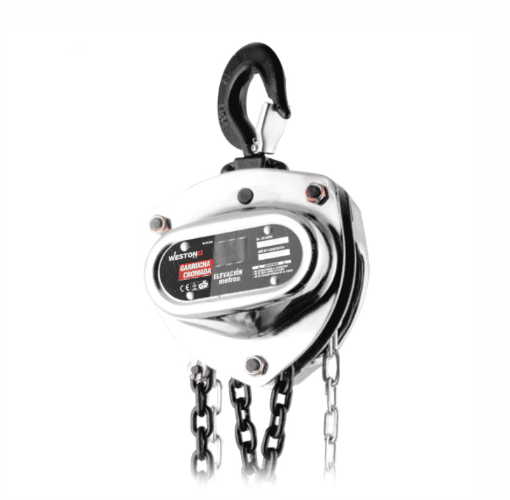 Polipastos Manuales fabricados en acero con Cadena de elevación en grado 80. Con Ganchos giratorios en acero forjado. Contamos con capacidades de carga desde 500 Kg hasta 10 Ton y longitudes de elevación desde 3 mt hasta 10 metros.