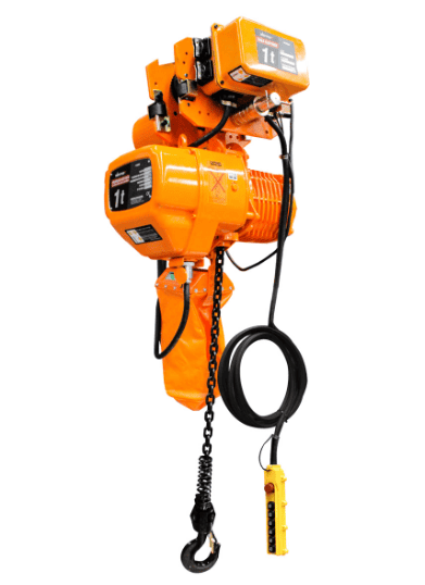 Motor trifásico Equipado con cadena grado 80 Voltaje 220 V / 440 V Frecuencia 60 Hz Velocidad de rotación (polipasto y trole) 1,440 RPM Velocidad de carrera (trole): 10/20 m/min