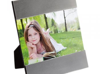 Descripción: PORTARRETRATO LIVING (2 Posiciones: horizontal y vertical. Tamaño de la foto 10 x 15 cm.) INFORMACIÓN BASICA CATEGORÍA: PORTARRETRATOS MATERIAL: Aluminio no Galvanizado TAMAÑO: 15.5 x 17.5 cm COLORES: Plata