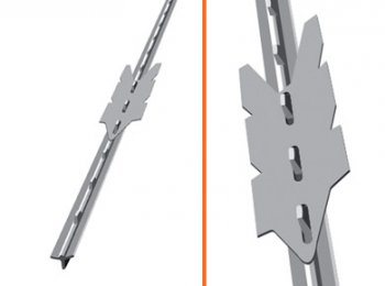 De la linea Casta Brava ofrecemos el Poste Ganadero tipo "T" para levantar cercados de alambres de púas o mallas, con garantía de durabilidad y firmeza. Producto de fácil instalación; no requiere excavación para colocarse, ya que cuenta con un ancla para fijarse sobre el terreno. El poste T Casta Brava es resistente en extremo, aún en caso de incendio. Otra ventaja sobre otros métodos es que NO requiere mantenimiento. Calibre 9, con un largo de 2.13 m y un peso de 2.590 kg por pieza.