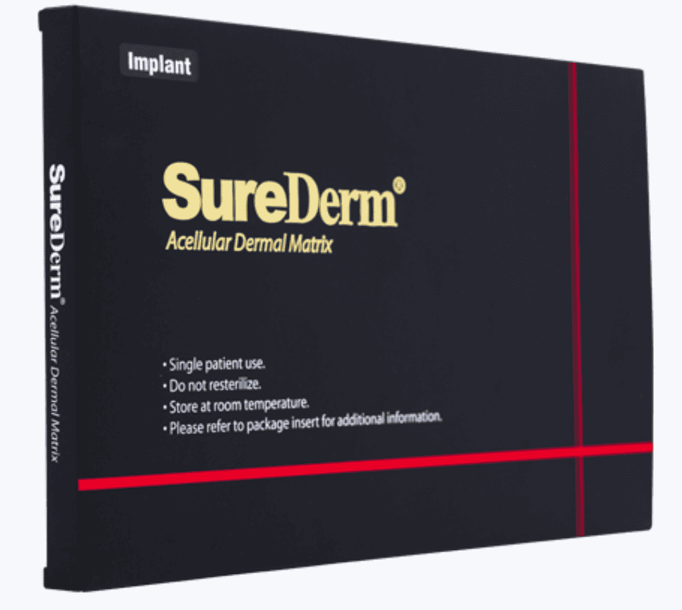SureDerm es un aloinjerto dérmico que se puede trasplantar en un paciente cuya piel se haya perdido debido a un cáncer de mama, un accidente automovilístico o una quemadura.