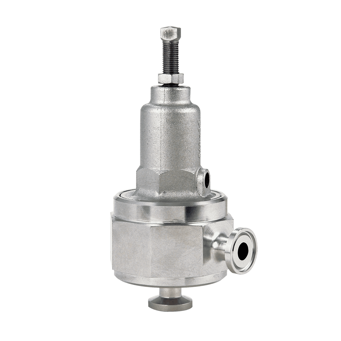 Regulador de alivio de contrapresión diseñado para los sistemas de tuberías para procesos biotécnico sanitarios. Usada en la industria farmacéutica, comida procesada, cosméticos, y otros químicos.