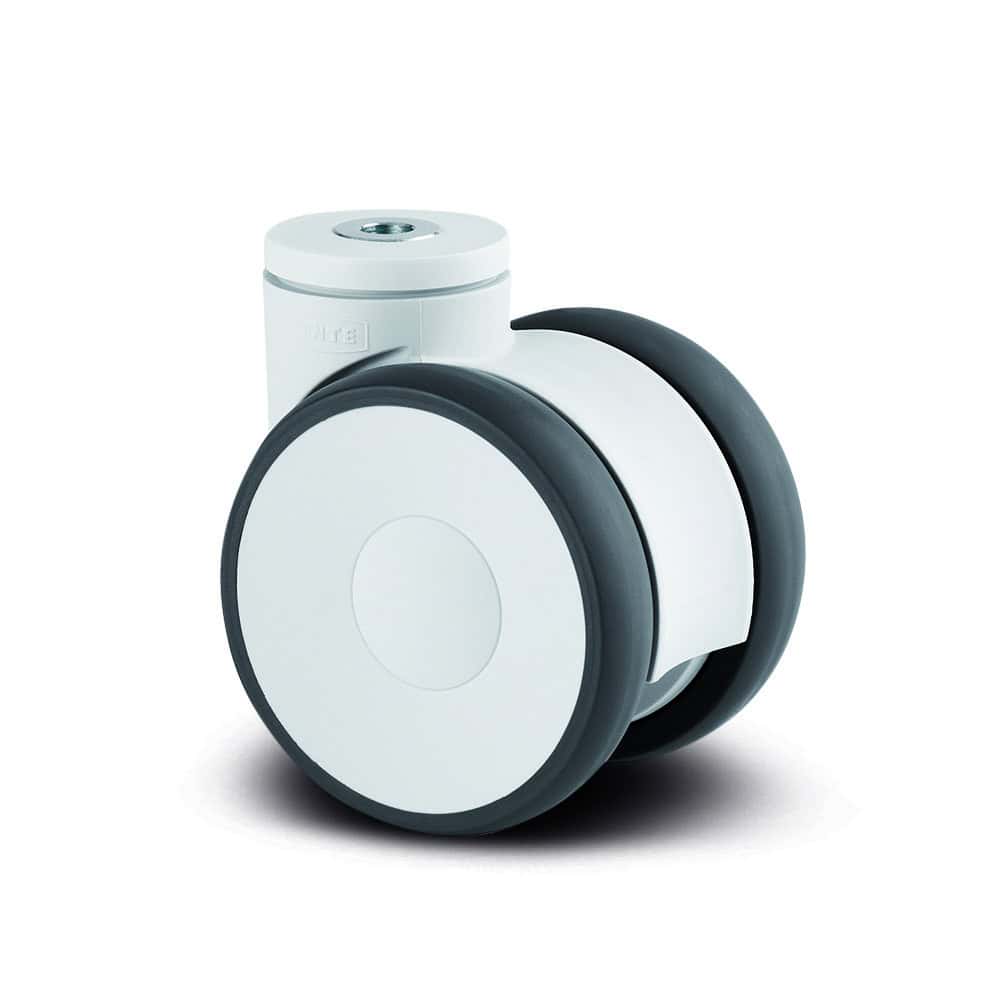 Serie LINEA Rueda giratoria, Soporte de poliamida, cojinete de bolas a precisión en cabeza giratoria, agujero pasante. Núcleo de rueda de poliamida, bandaje de poliuretano, cojinete de bolas de precisión.