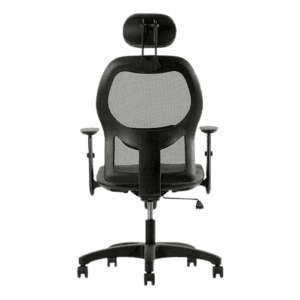 Sillón ejecutivo. Mecanismo reclinable. Respaldo en malla con soporte lumbar ajustable y cabecera. Asiento en poliuretano inyectado. Tapizado en tela con retardante a la flama y teflón. Piston neumático. Base de 5 puntas de nylon y descansa brazos.