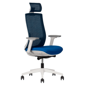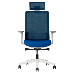 Mecanismo synchro multiposiciones con slide plate. 3 posiciones de bloqueo. Descansabrazos ajustable en 4D. Soporte lumbar ajustable. Acojinamiento en asiento de poliuretano inyectado. Cuerpo del sillón en polipropileno color blanco. Cabecera y respaldo en malla color gris, vino o azul. Base de 5 puntas fabricada en nylon color blanco.