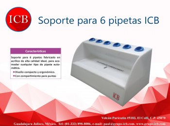SOPORTE PARA 6 PIPETAS ICB. Soporte para 6 Pipetas ICB, fabricado en acrílico de alta calidad ideal, para acomodar cualquier tipo de pipeta automática, diseño compacto y ergonómico.