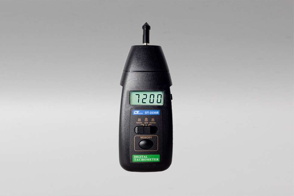 El tacómetro de contacto modelo LT-DT2235B es un equipo compacto que opera por baterías y de un tamaño convenientemente pequeño para poder llevarlo en la mano. Podrá realizar mediciones de revoluciones por minuto de volante rotores, y otras piezas en movimiento circular con tan solo tocar el eje del cuerpo en movimiento. Este equipo además de determinar la cantidad de revoluciones por minuto directamente del eje de giro también cuenta con una rueda de prueba que indica la velocidad de giro de la pieza en movimiento.