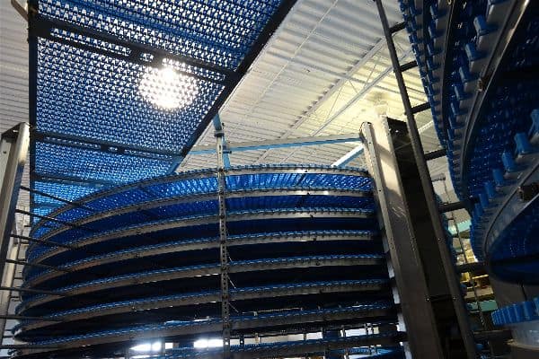 El transportador en espiral OutRunner cuenta con una tecnología revolucionaria pero probada que elimina la jaula de transmisión central y da la garantía de tener la misma tensión en todos los niveles.
