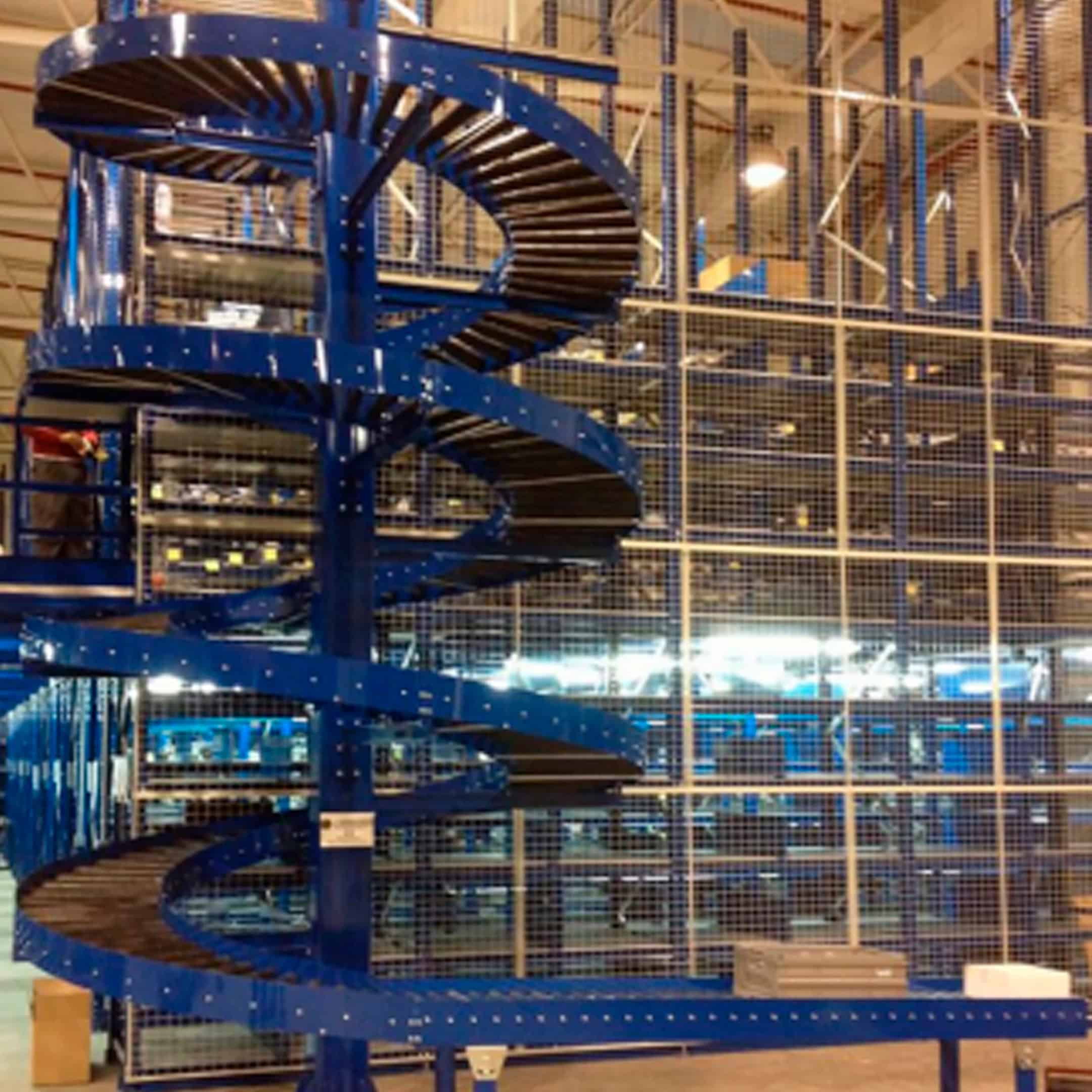 Conformados por un bastidor en espiral de acero al carbón con terminación en pintura electrostática y rodajas, ruedas o rodillos sirven para transportar o bajar productos por gravedad donde solo se cuenta con espacios muy reducidos para cargas ligera, medianas y pesadas; es un equipo de muy bajo costo comparado con los espirales motorizados.