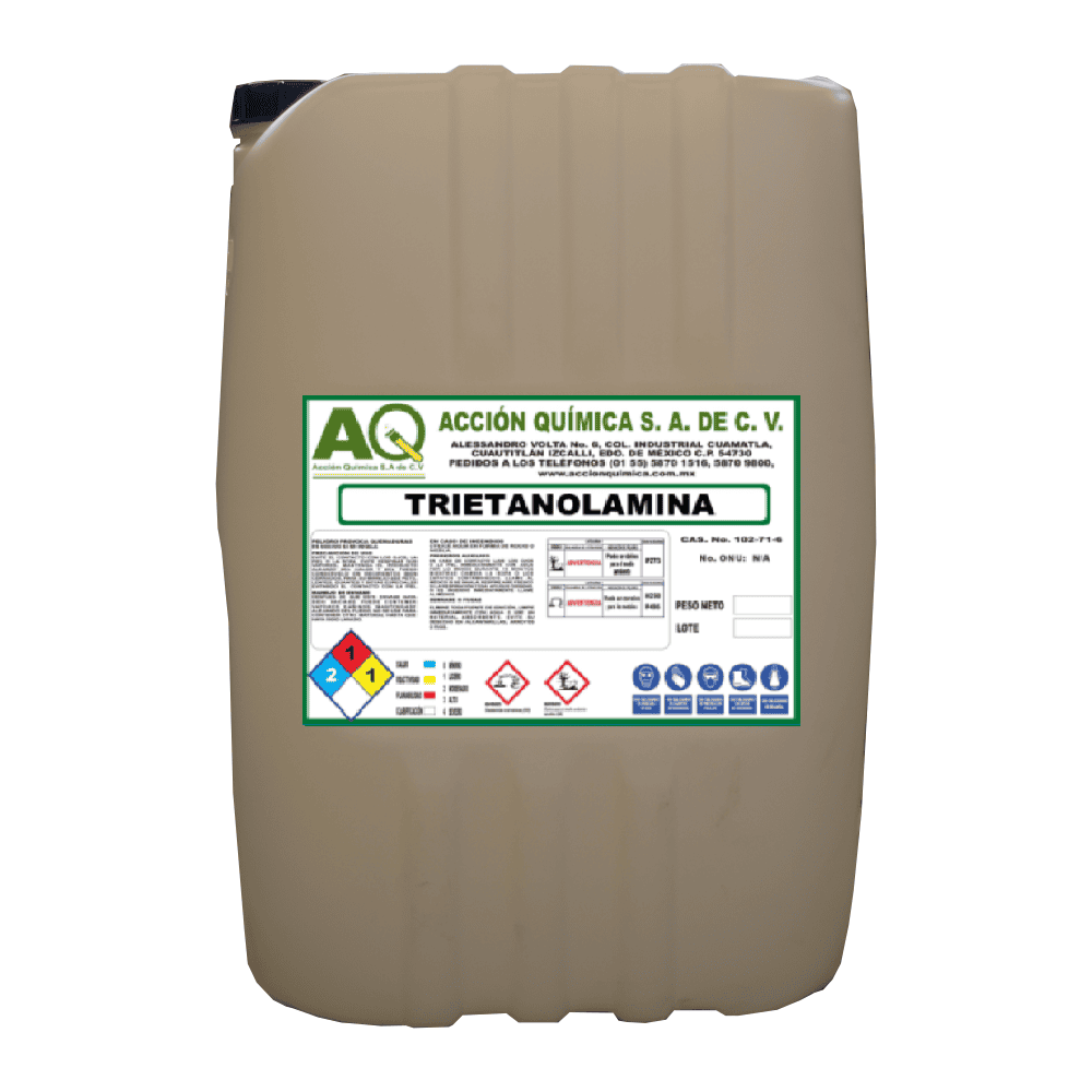 Usos: Neutralizador de sustancias con pH ácidos. En la fabricación de productos cosméticos y tensoactivos. Alcalinizante en limpiadores multifuncionales y en ácidos grasos de cadena larga. Neutralizador en formulaciones agroquímicas, especialmente herbicidas. Acelerador de la velocidad de endurecimiento de hormigón en bajas concentraciones y retardador de endurecimiento cuando es aplicado en altas concentraciones.