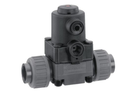 Válvula de diafragma 2/2 vías GEMÜ 610 en plástico, neumaticamente operada.
