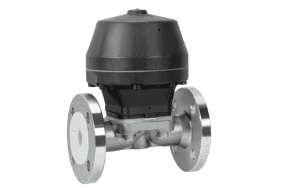 Válvula de diafragma GEMÜ 695 en metal, neumaticamente operada.