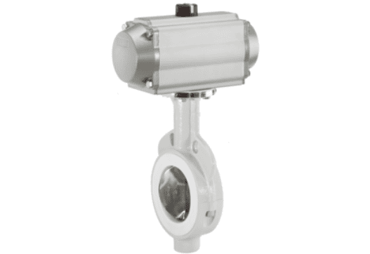 Válvula de mariposa GEMÜ 491 en metal, neumaticamente operada.