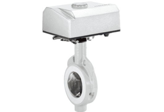 Válvula de mariposa GEMÜ 498 en metal, motorizada.