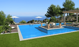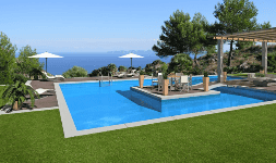 El pasto sintético le da mejor aspecto a las áreas verdes de tu piscina y al jardín que decora el frente de tu casa