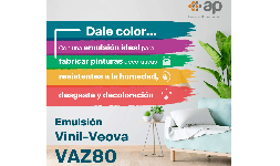 Emulsión eco-amigable para la formulación de pinturas decorativas para interiores y exteriores de diferentes calidades, desde mates hasta brillantes.