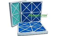 Filtros tipo minipleat de 24x24x4 con marco de cartón, 6 pliegues por pulgada, eficiencia MERV 13 ó 14 (85-95%). Certificación ASHRAE 52.2