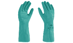 Guante de nitrilo verde Solvex para protección química.
