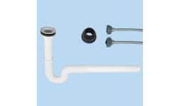 Kit cespol completo lavabo con contra blanca aro cromado. Incluye contra con aro blanco, trampa de pvc flexible, 1 boquilla y 2 tubos alimentadores.