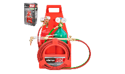Con cilíndros de oxígeno y acetileno, cuenta con sopletes con boquillas intercambiables para cortar y soldar. incluye porta equipo para fácil transporte.