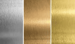 Lámina de aluminio anodizado de diversos grosores y calibres en acabados metálicos lisos y cepillados, principalmente en colores oro, plata espejo, bronce, ahumado, etc.