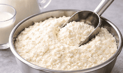 Leche descremada en polvo con bajo contenido de grasa, formulada para mejorar textura y manejabilidad en productos horneados.