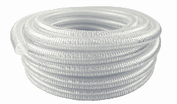 Manguera de PVC flexible transparente, reforzada con espiral de PVC rígido color blanco, que la hace ser muy flexible, doblándose sin obstruir su diámetro interior.