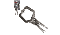 Pinza de presion tipo C mordaza ajustable. Tornillo de ajuste de presión. Palanca para liberar pienzas. Usos: Soldadura, talleres e industria.
