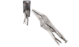 Pinza de presión punta larga con corta cable. Tornillo de ajuste de presión, palanca para liberar pinzas, agarre firme y seguro. Ideal para lugares estrechos.