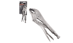 Pinza de presion mordaza curva. Mordaza de Cr-V. Tornillo de ajuste de presión. Palanca para liberar pinzas. Agarre firme y seguro.